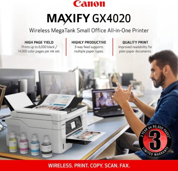 Canon Megatank GX4020 All-in-One Wireless Supertank Printer with Print, Copy, Scan and Fax | Auto Document Feeder | Mobile Printing | 2.7″ LCD Touch Screen