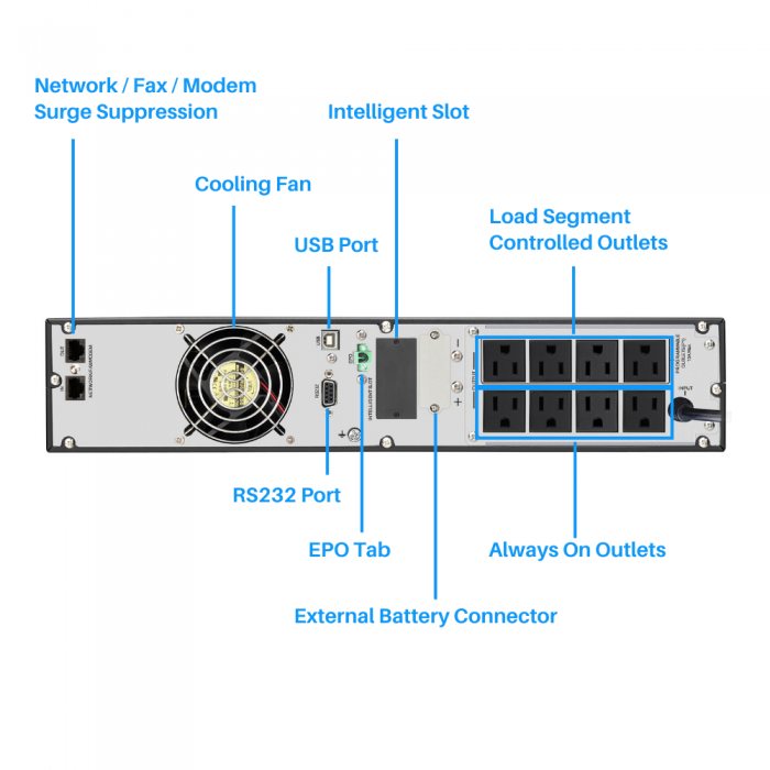 | RS232 Port | Yes, for power management software to control and monitor the UPS conditions |
