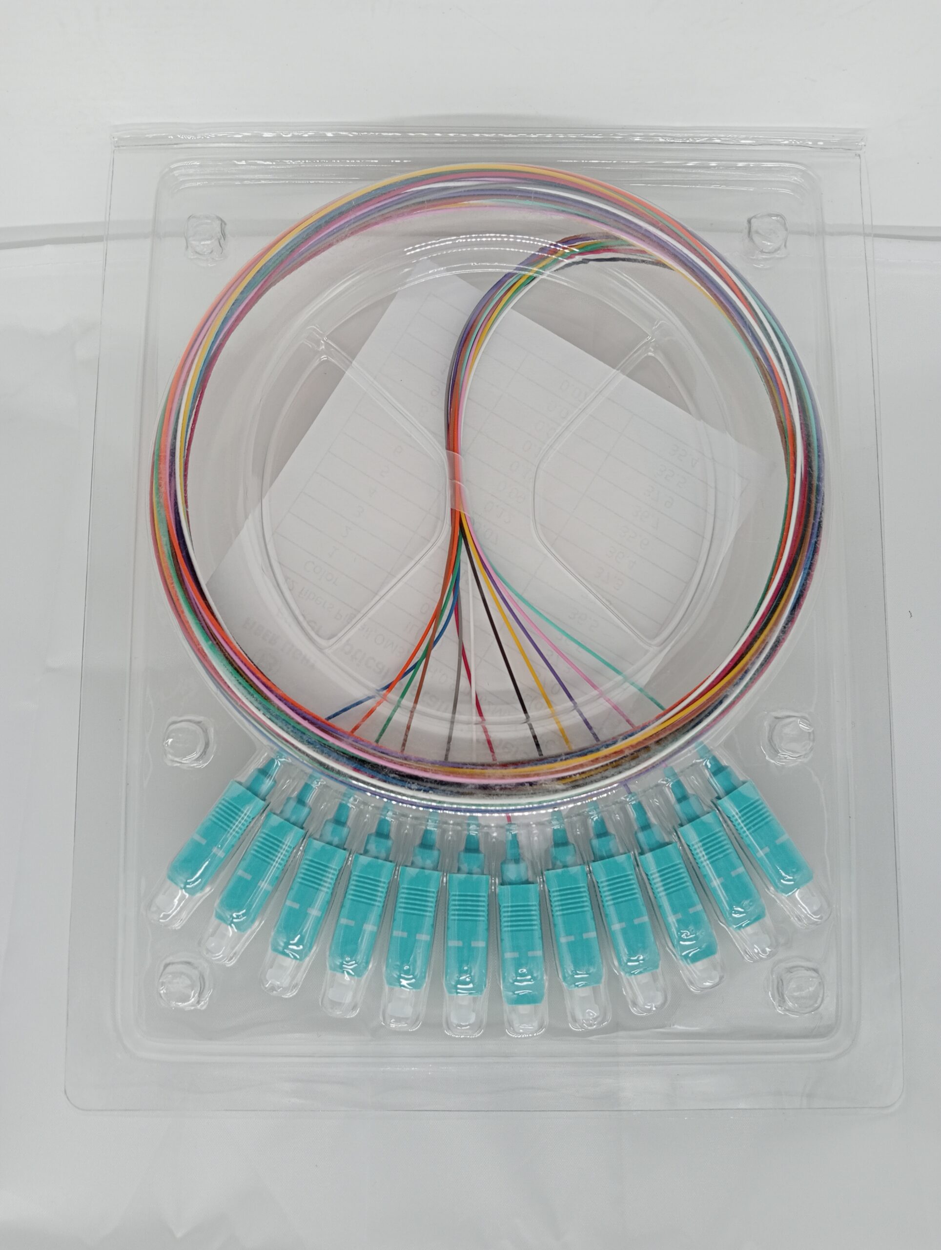 Pigtail SC – MM-OM3 UPC 2meter ITU-T G.651 – 12 Colored Fiber at Plastic Packing (Aqua Connectors)